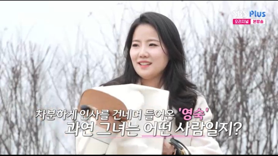 정숙님의 첫인상은 굉장히 센 언니 캐미로 카리스마 있어 보여서 감히 범접하지 못할 것 같은 인상입니다. 보시는 분들의 입장에 따라서는 섹시하고 귀엽다는 분들도 많이 계셨습니다. 패션을 좋아하는 관계로 쇼핑몰을 운영하고 있고, 꾸안꾸 스타일이 콘셉트이라고 하셨는데요. 괜찮은 결혼 상대 출 찾기 위해 결혼정보회사에 무려 천만 원을 투자했다는 정숙님의 스케일은 마치 여장부처럼 느껴졌습니다. 결혼을 하지 못한 이유에 대해서는 외모를 포기하지 못해서라는 이색적인 답변을 했는데요. 자유분방한 모습으로 자신을 드러내기 좋아하는 분으로 자기주장이 확실해서 꺾이지 않을 것만 같은 정숙님의 인상은 상당히 인상적이었습니다. 제 생각으로는 섹시귀염 스타일보다는 기가 세고, 까다로운 스타일이 아닐까 싶습니다.
