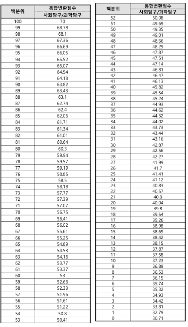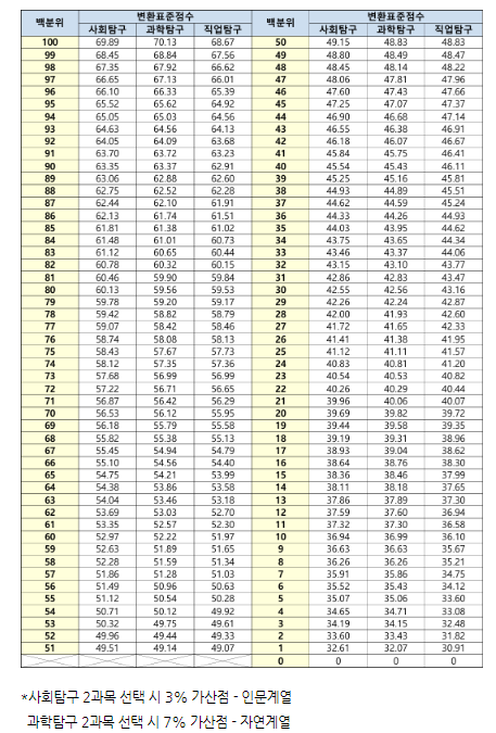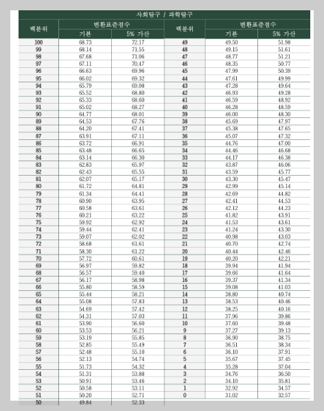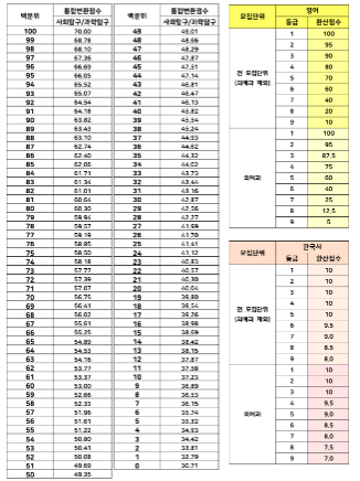 각 대학별로 변환표준점수표를 발표하고 있는 가운데 각 학교별로 정리해 보았습니다.