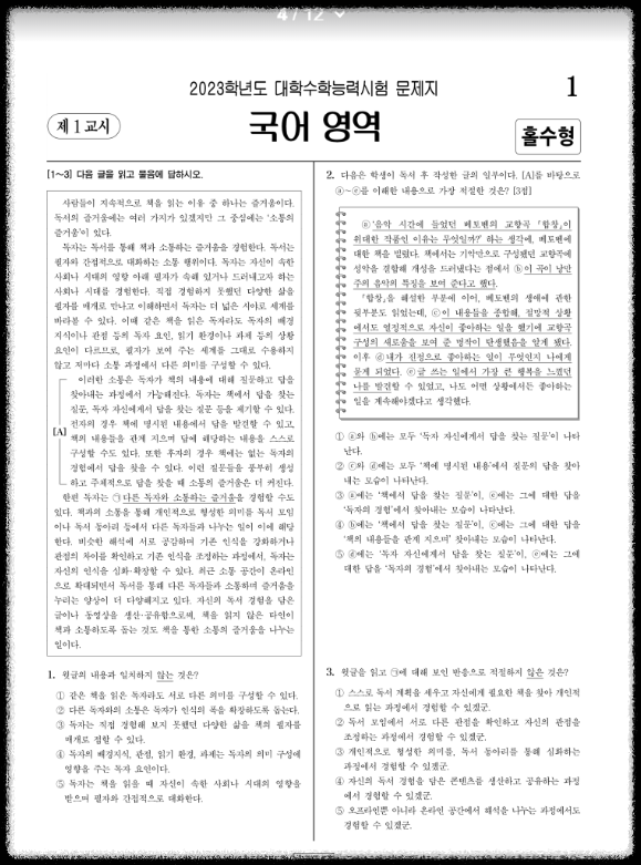 1. 수능 기출 국어