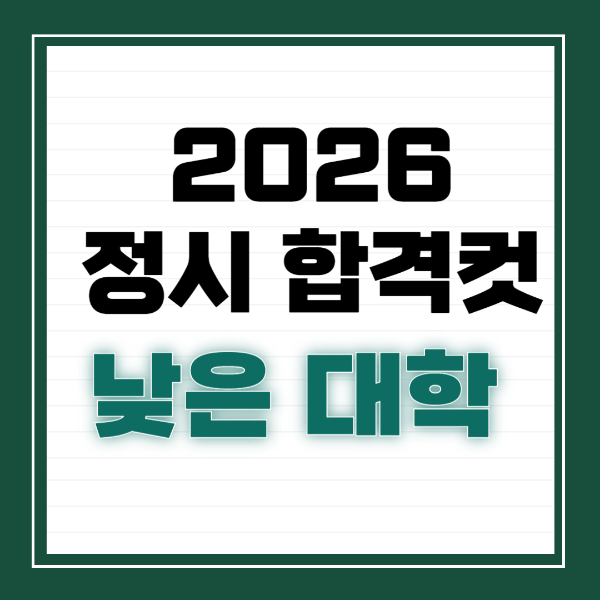 2026 정시에서 합격컷이 낮아지는 대학은 어디일까? 올해 점수대별 지원가능 대학, 경쟁률·반영비율·과별 특성을 기반으로 ‘현실적으로 붙는 대학’만 선별해 정리했습니다. 정시 지원 전략이 막막하다면 꼭 참고하세요.